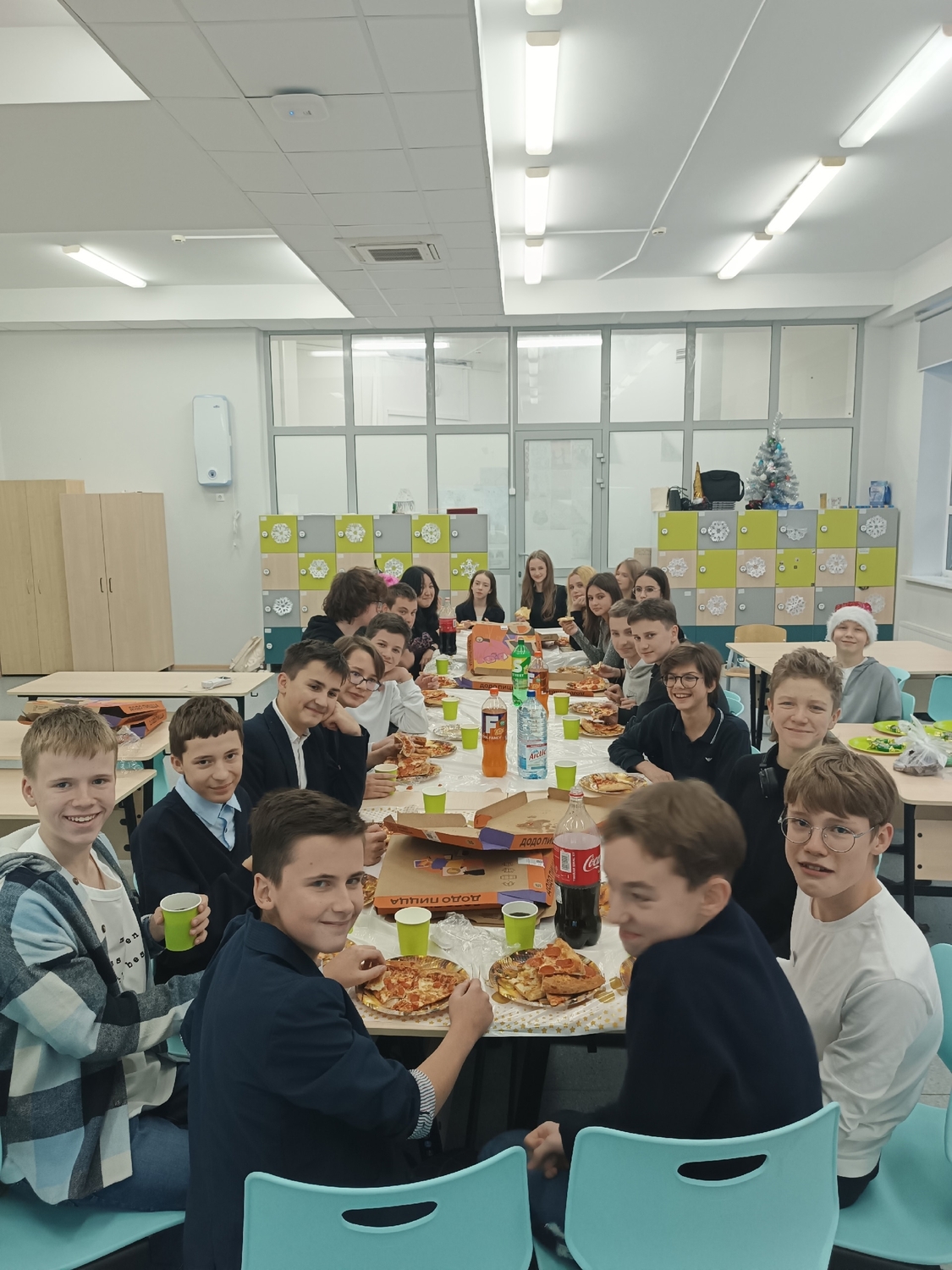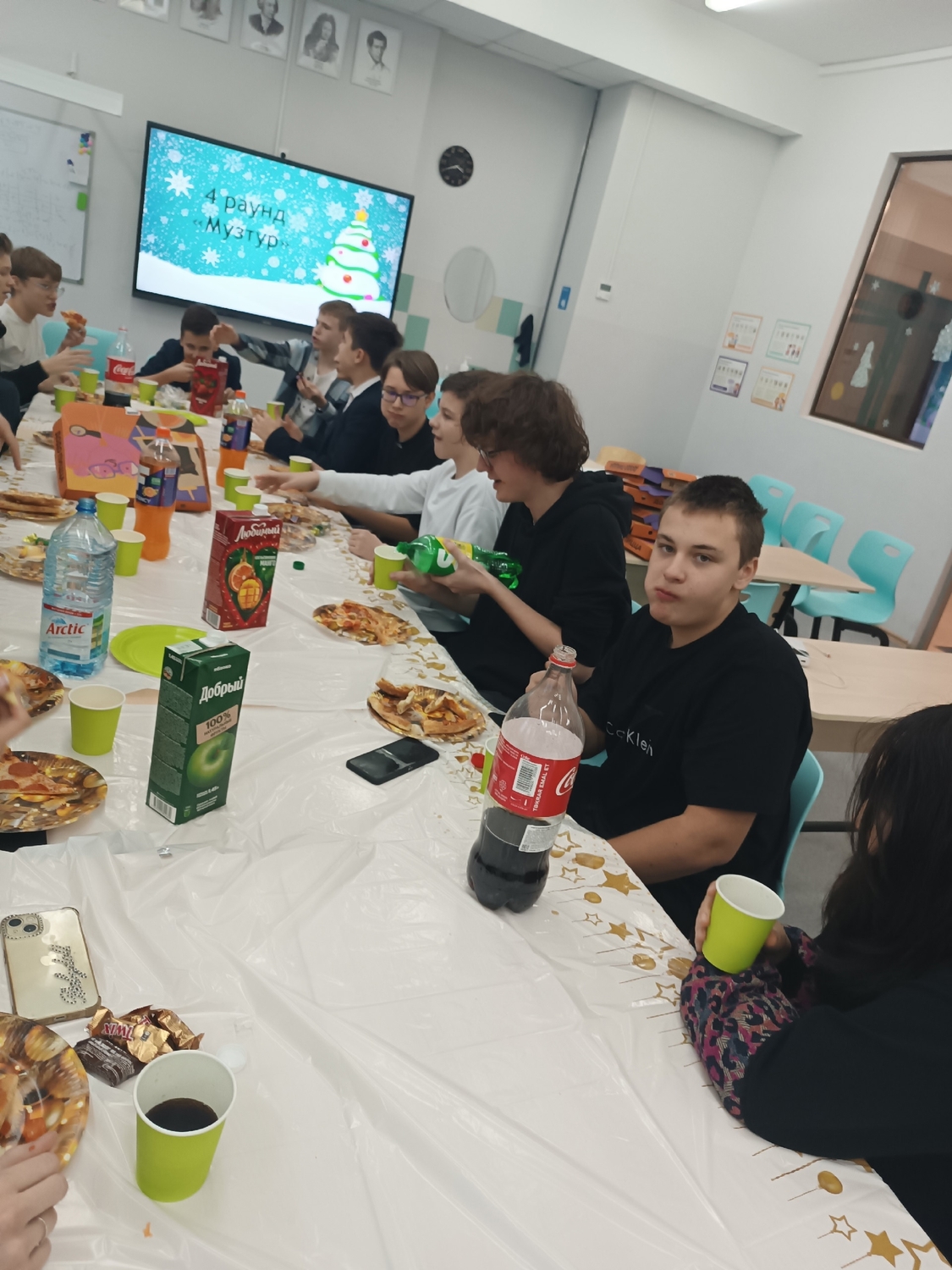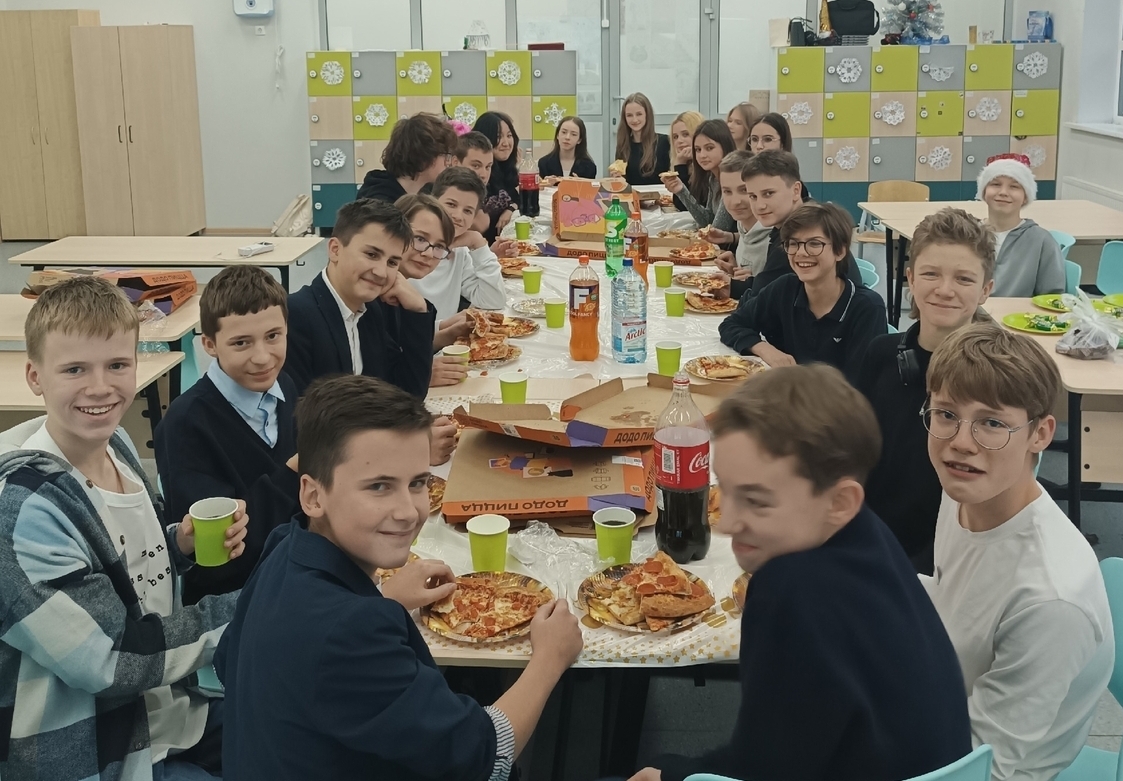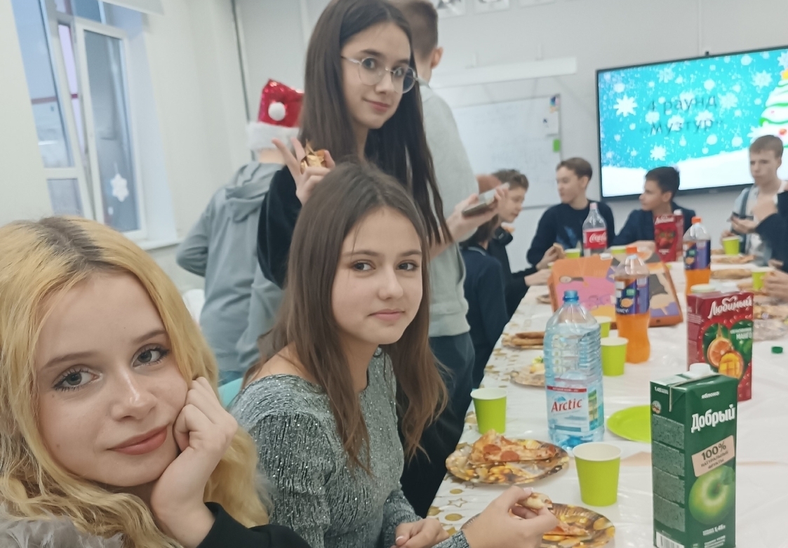 В школе прошли "Новогодние огоньки". Ученические коллективы 8-В и 8-М классов поучаствовали в новогоднем квизе, а затем итоги, получили подарки на от Тайных ДМ, весело провели время на "Пицца-пати".