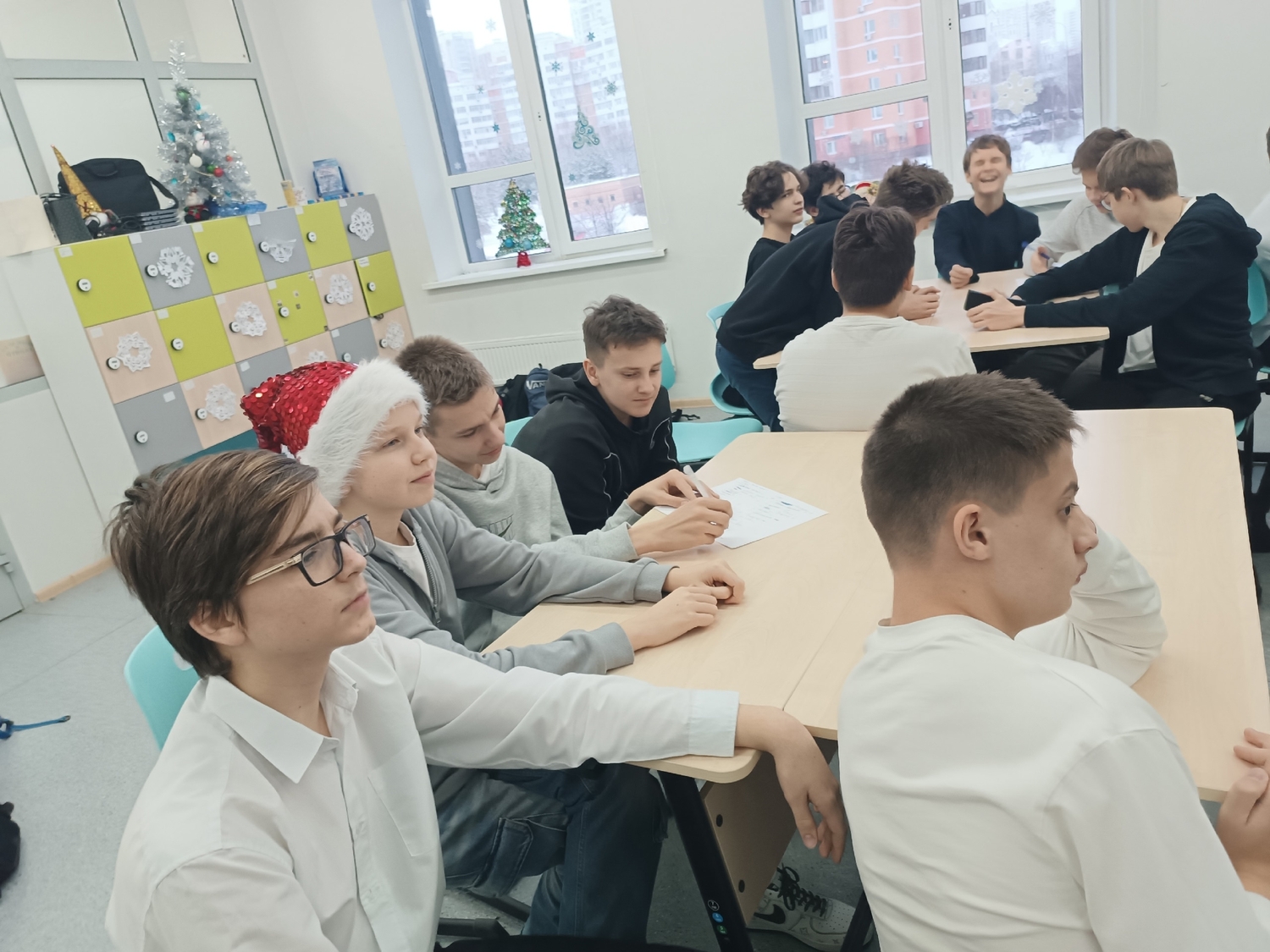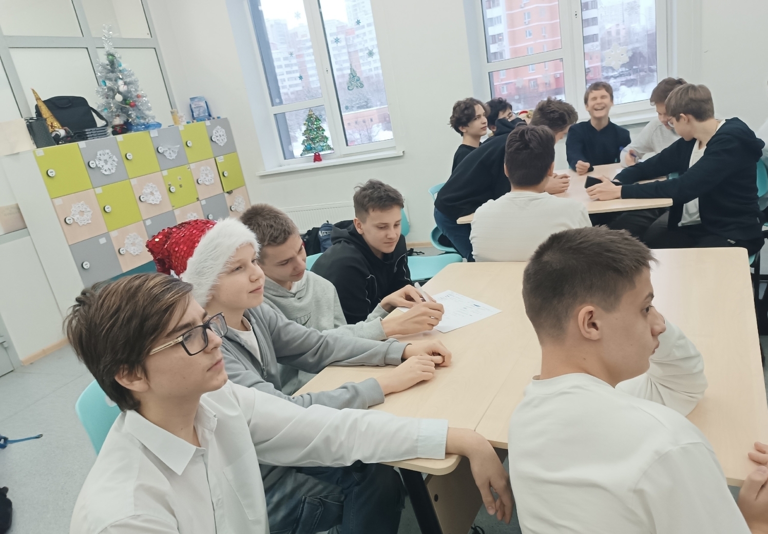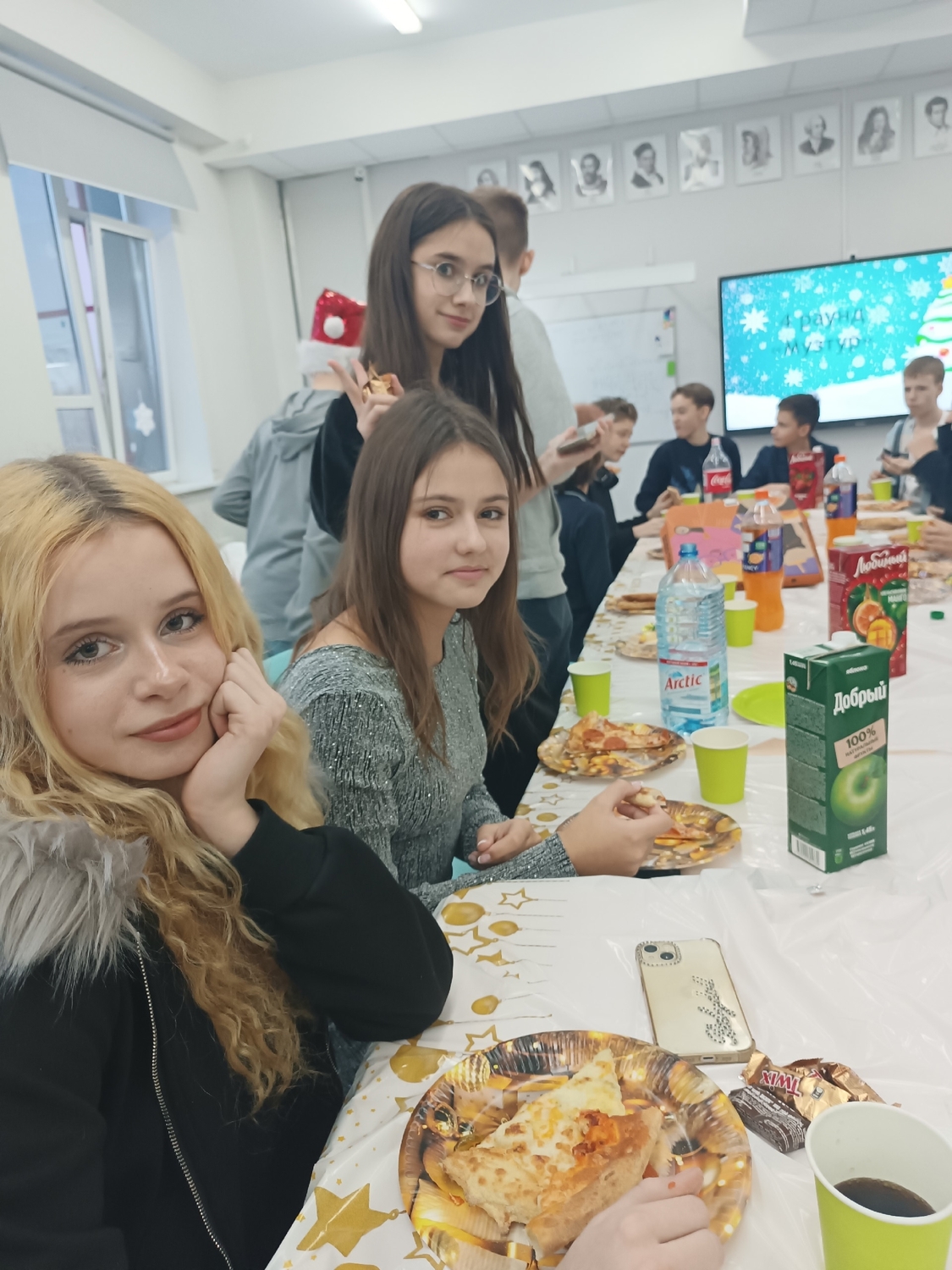 В школе прошли "Новогодние огоньки". Ученические коллективы 8-В и 8-М классов поучаствовали в новогоднем квизе, а затем итоги, получили подарки на от Тайных ДМ, весело провели время на "Пицца-пати".