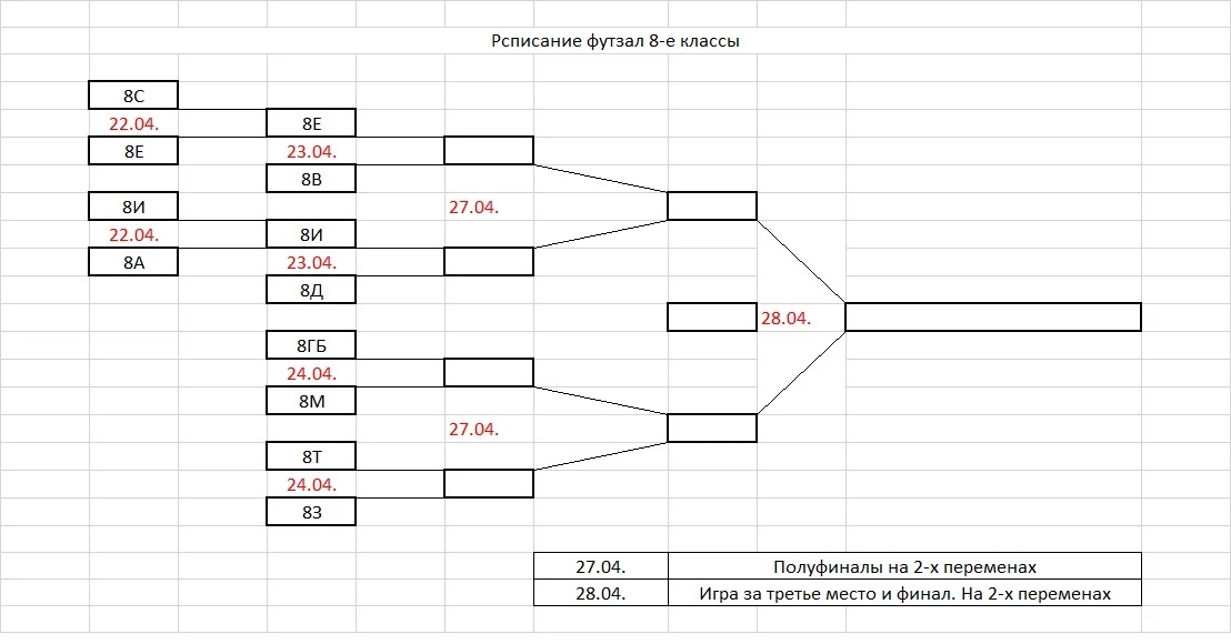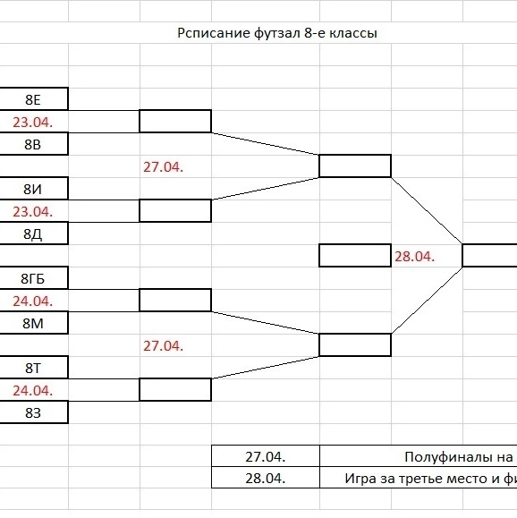 23.04.2026 состоится игра по футзалу между командами 8В и 8Е классов на первой большой перемене (после 4 урока).