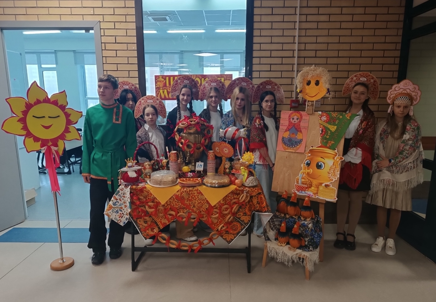 В школе прошло празднование Широкой Масленицы. Каждый класс в параллелях 7-11 классов представил свой стол. Обучающихся разных классов приходили друг к другу за угощениями. Ученические коллективы 8-В и 8-М классов также представили свои столы.